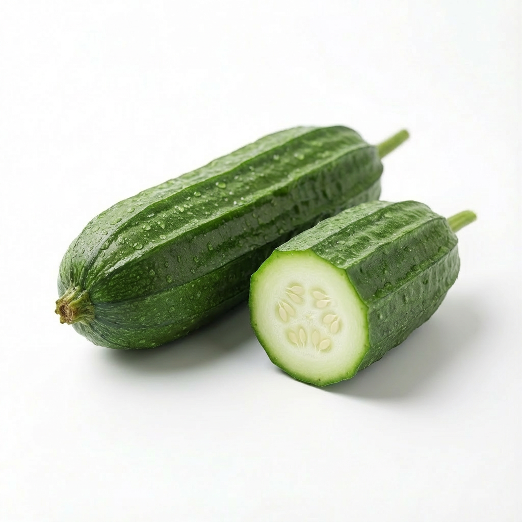 Die gerippte Schwammgurke, auch Turia oder Ridge Gourd genannt, ist ein leichtes, mildes und sehr bekömmliches Gemüse mit länglicher Form und charakteristischen Längsrillen. Das Fruchtfleisch ist weich, saftig und nimmt Gewürze hervorragend auf. Sie wird in der indischen, asiatischen und afrikanischen Küche häufig in Currys, Sabzis, Suppen und Pfannengerichten verwendet.